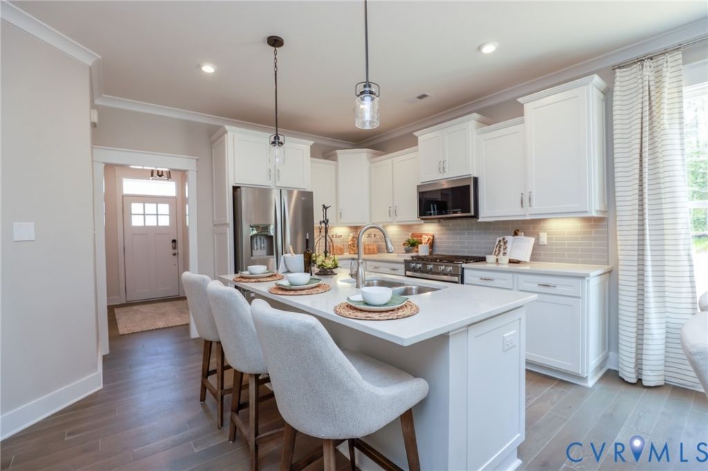 Discover Wyndham Plantation West, a peaceful new townhome at Williamsburg, set within a charming, established community surrounded by mature trees and convenient amenities. This beautiful Cary floor plan is a spacious two-story townhome offering 6 bedrooms and 3.5 baths with a highly sought-after first-floor primary suite and a finished basement with a bedroom and ensuite bath. The open-concept main level features a beautifully designed kitchen featuring a center island, granite countertops, a pantry, and stainless steel appliances, perfect for everyday living. A bright family room featuring the Allusion electric fireplace, a separate dining area, and access to the wooden rear deck, perfect for relaxing or entertaining. Tucked privately at the rear, the primary suite offers a huge walk-in closet and a spa-inspired bath with a shower, double vanity, and direct access also to the rear deck, ideal for relaxing mornings or peaceful evenings. Upstairs, you'll find four additional bedrooms, a full bath, and a loft area, giving you all the space you need to live, work, and host in style. A versatile finished basement featuring a bedroom and ensuite bath completes this home. Enjoy a well-balanced lifestyle just minutes from Colonial Williamsburg, New Town, William & Mary, and scenic local trails. With breathtaking views and modern amenities with convenient access to shopping, dining, and entertainment, Wyndham Plantation West is where tranquility meets excitement.