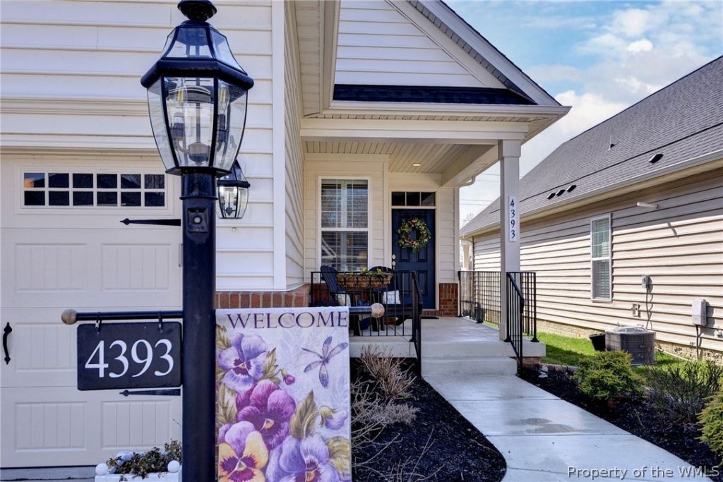 Welcome to this absolutely charming Cottage Home nestled against a wooded backdrop. Enjoy the convenience of one level living with modern & classic touches throughout. A welcoming covered front porch surrounded with lush landscaping happily greets you. A sweet foyer entrance, Family Rm and Dining area provide an easy & enjoyable layout. A cheery & bright designer kitchen showcases the gorgeous wooded views and lovely outdoor setting that awaits you. An upscale covered porch , custom extended patio with built in gas fire pit and enhanced landscaping is just the spot to start and end your day. The Flex Room works nice for an office, den or hobby space. The Primary BR features wood flooring, 2 closets and full bath. Lots of extras, well cared for and maintained and MOVE-IN-READY. Close location to clubhouse & amenities. Enjoy living in Williamsburg's premier 55+ Resort Community.